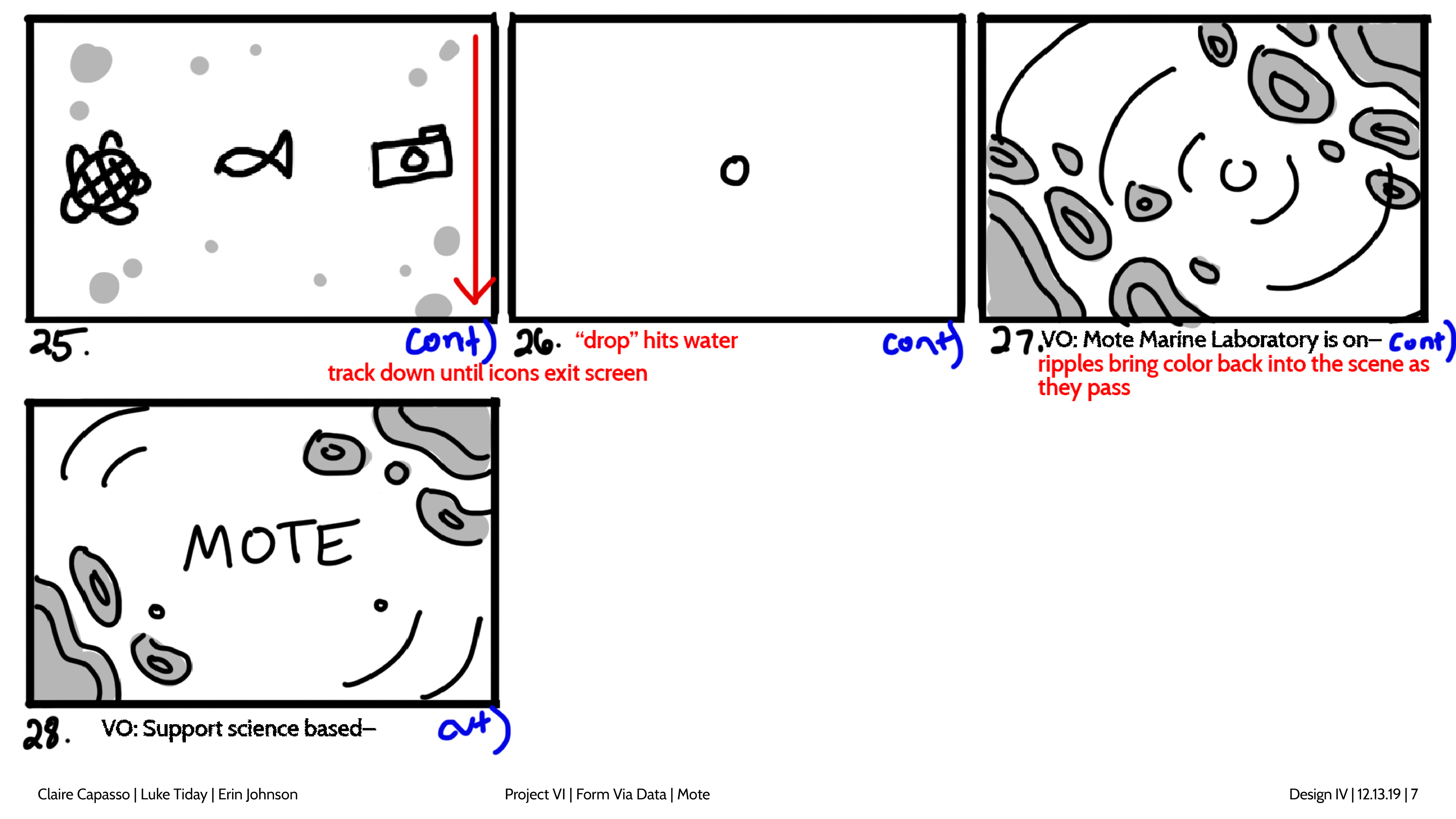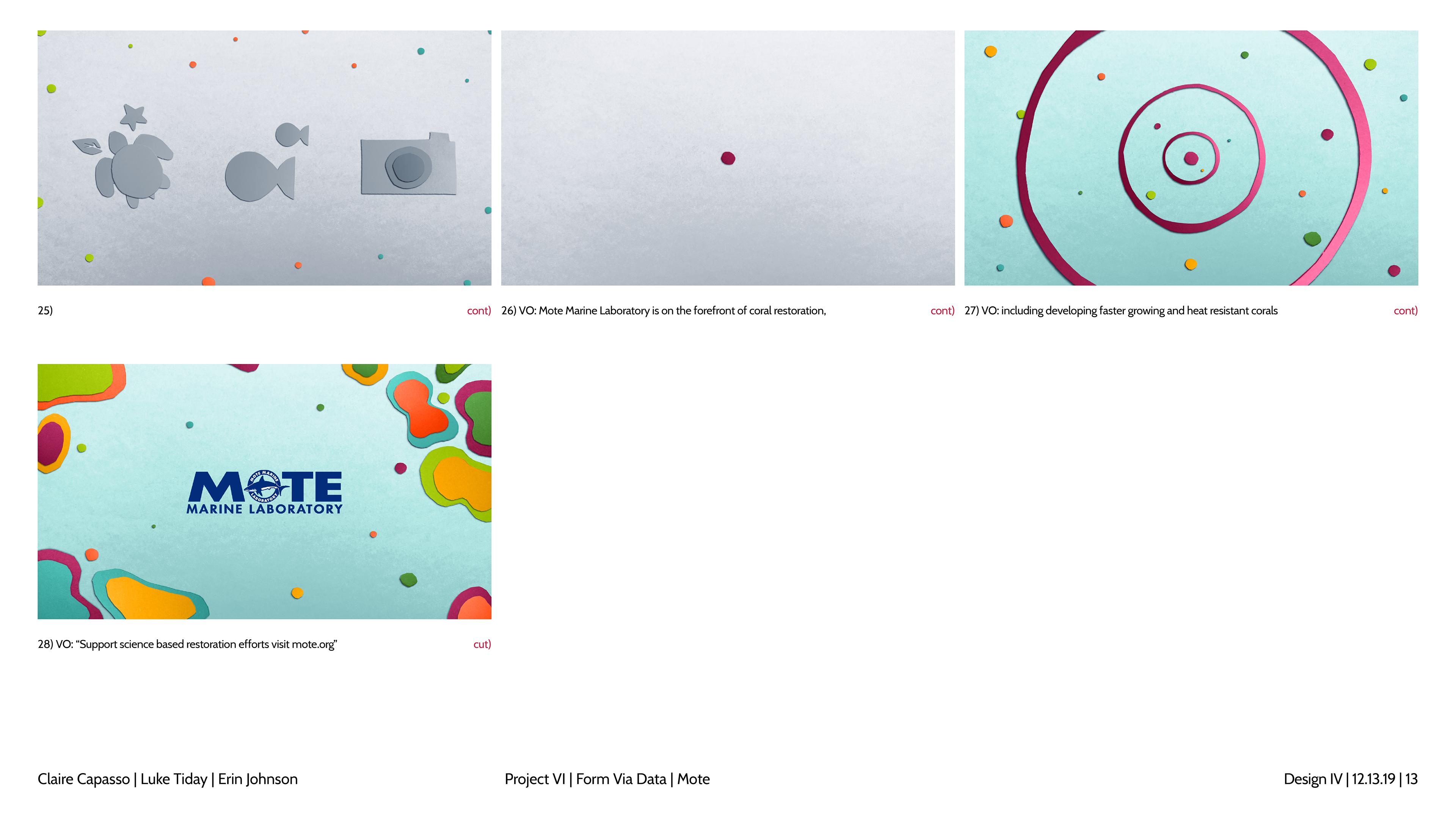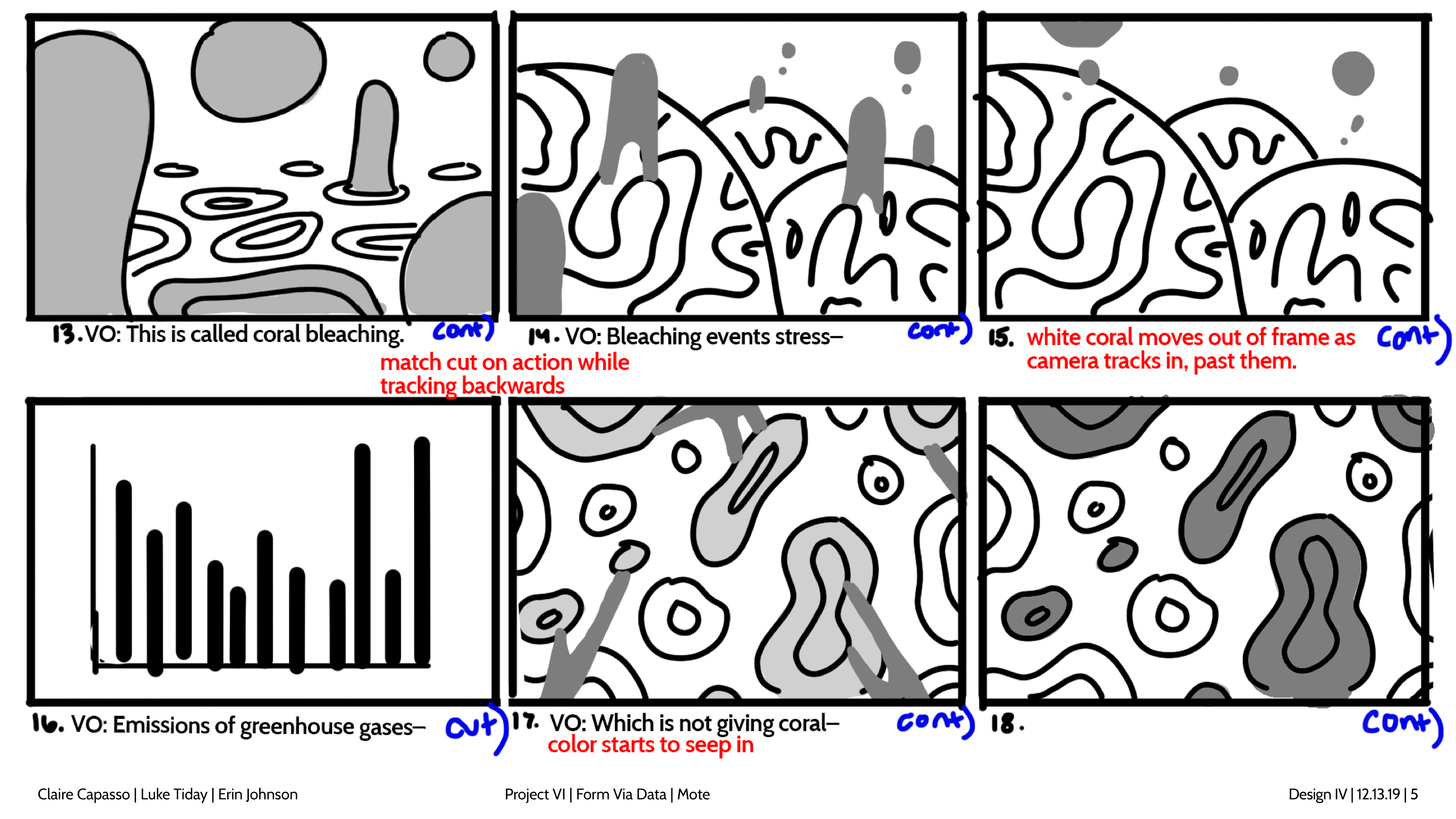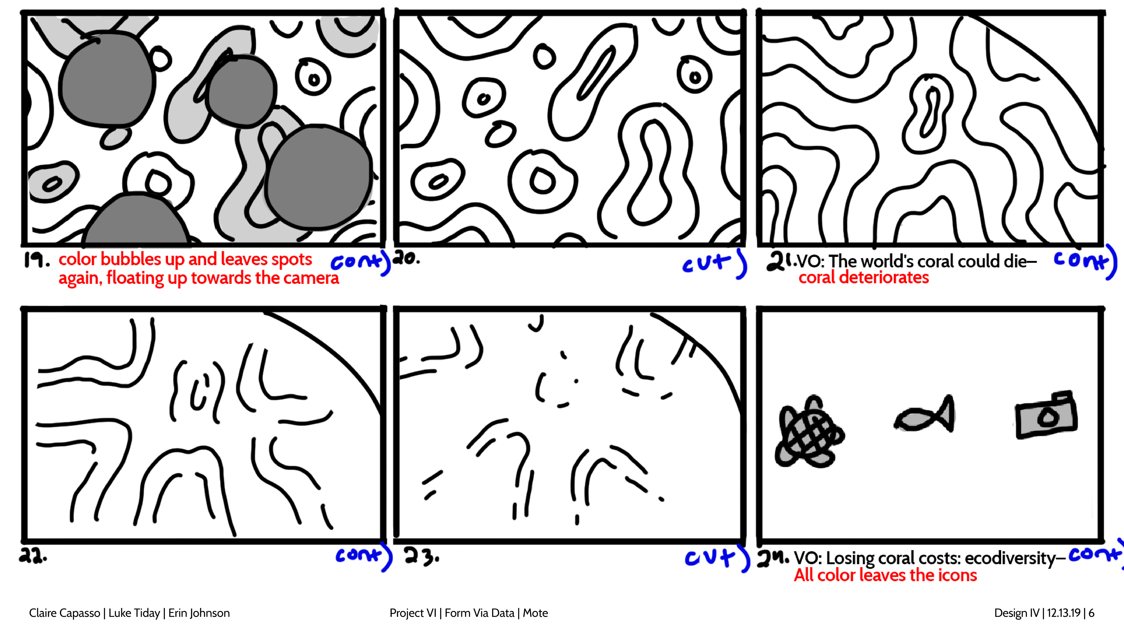 Design and story boards for a spot focusing on coral bleaching and the Mote Aquarium.