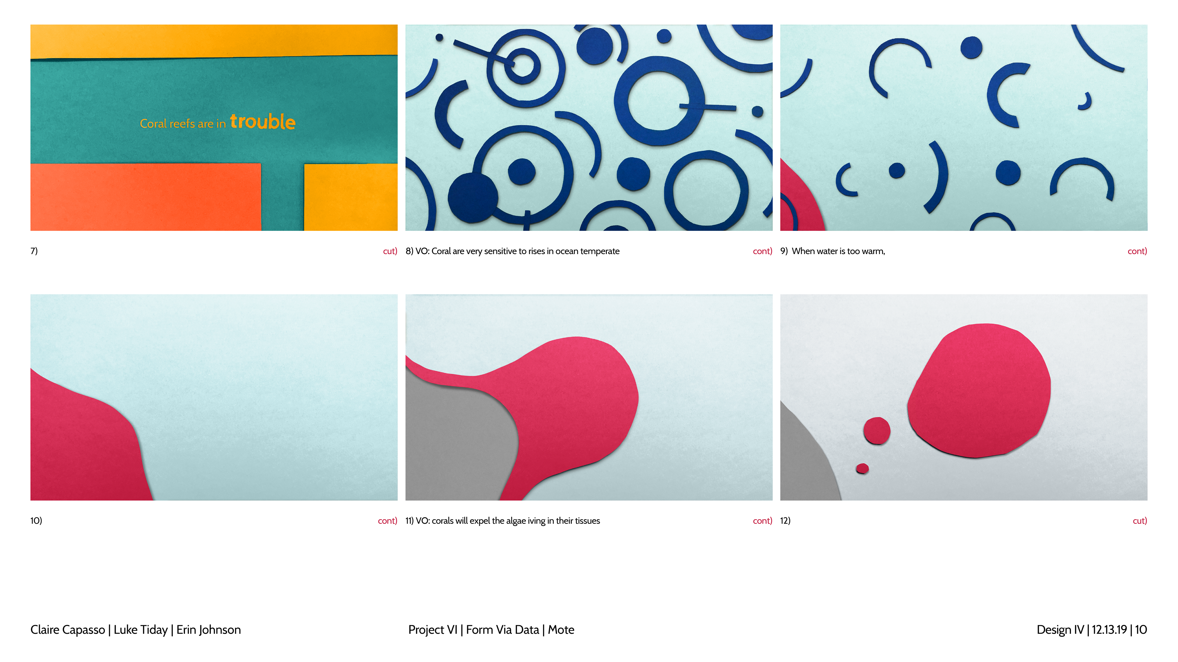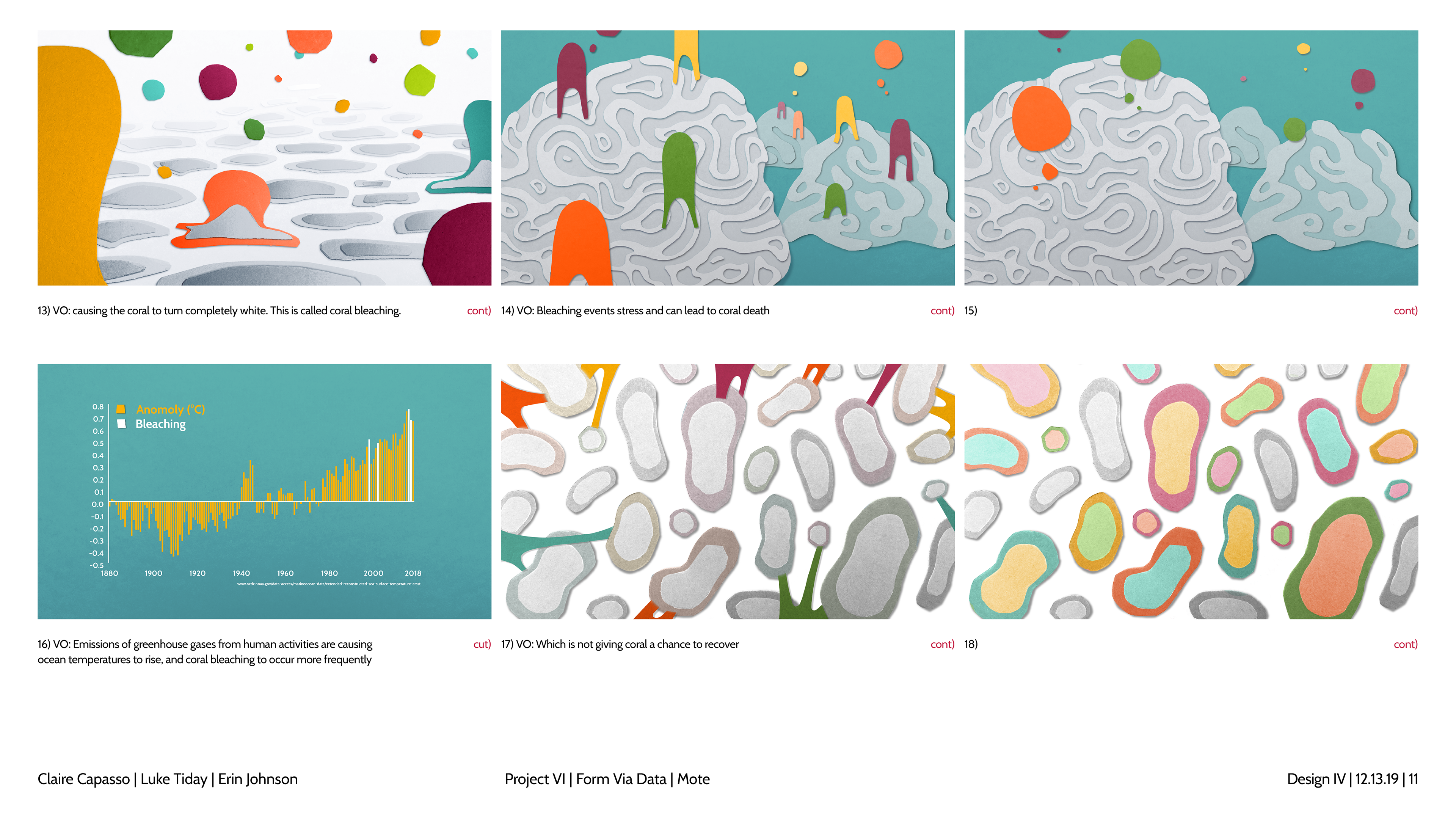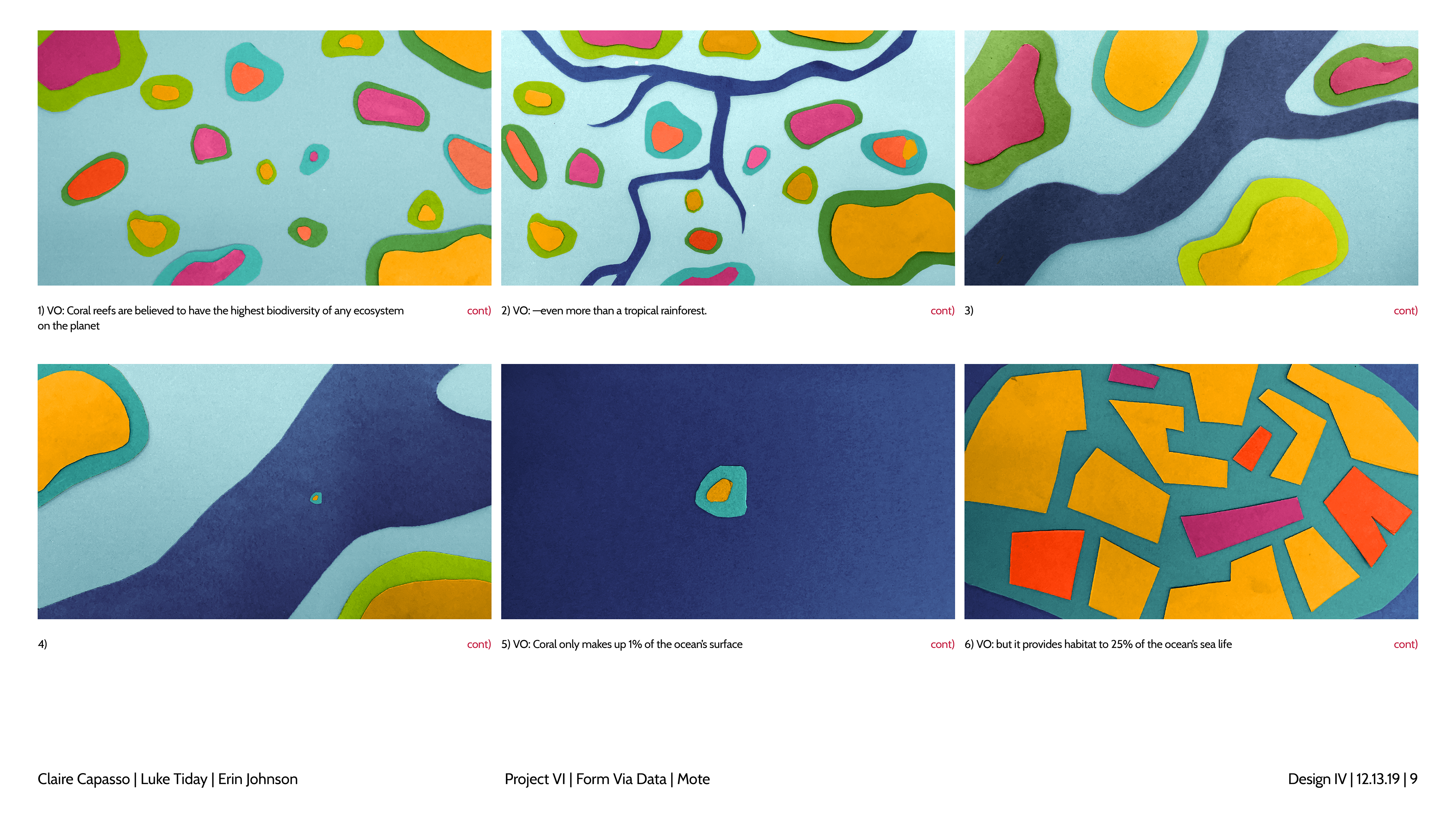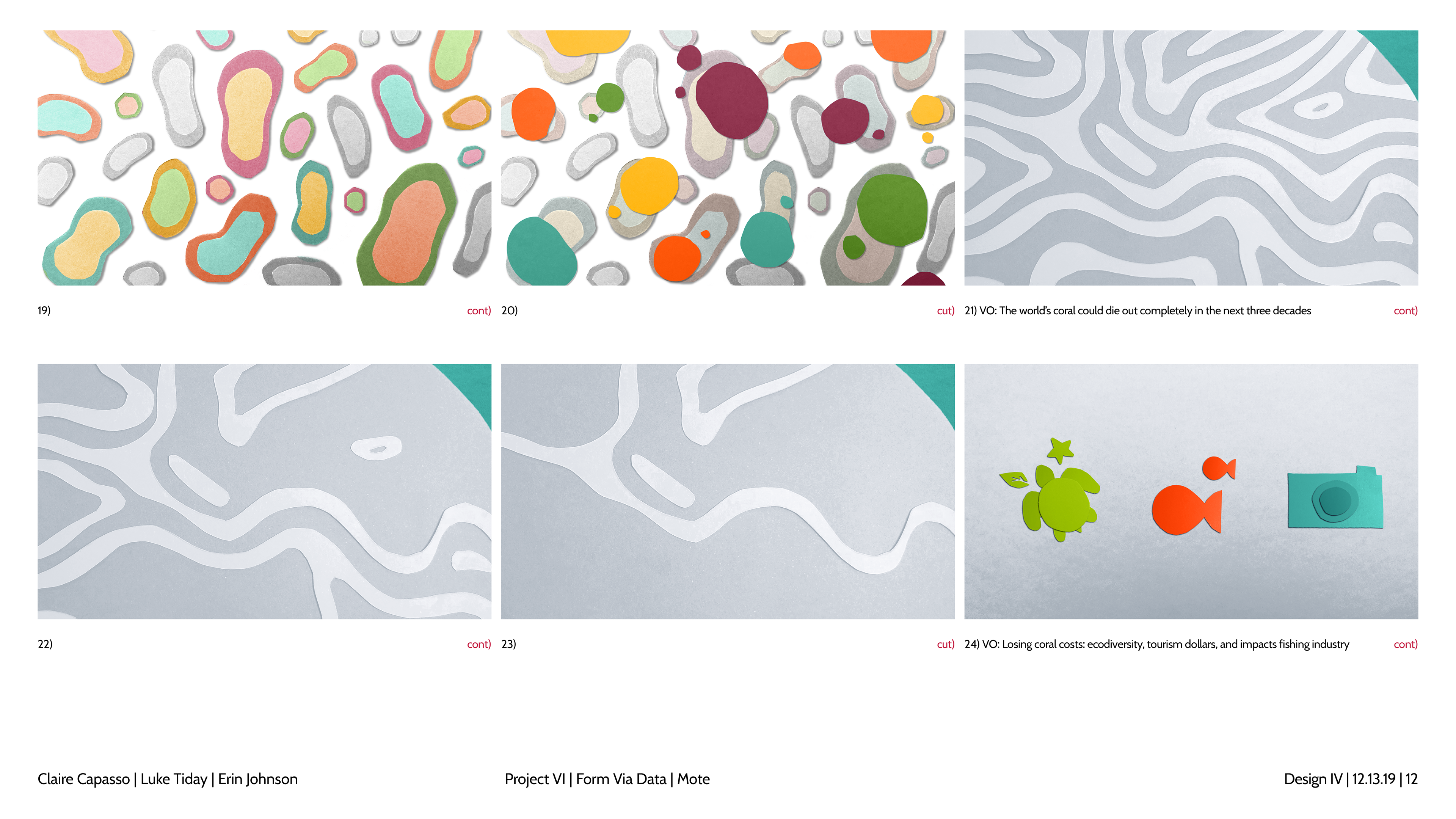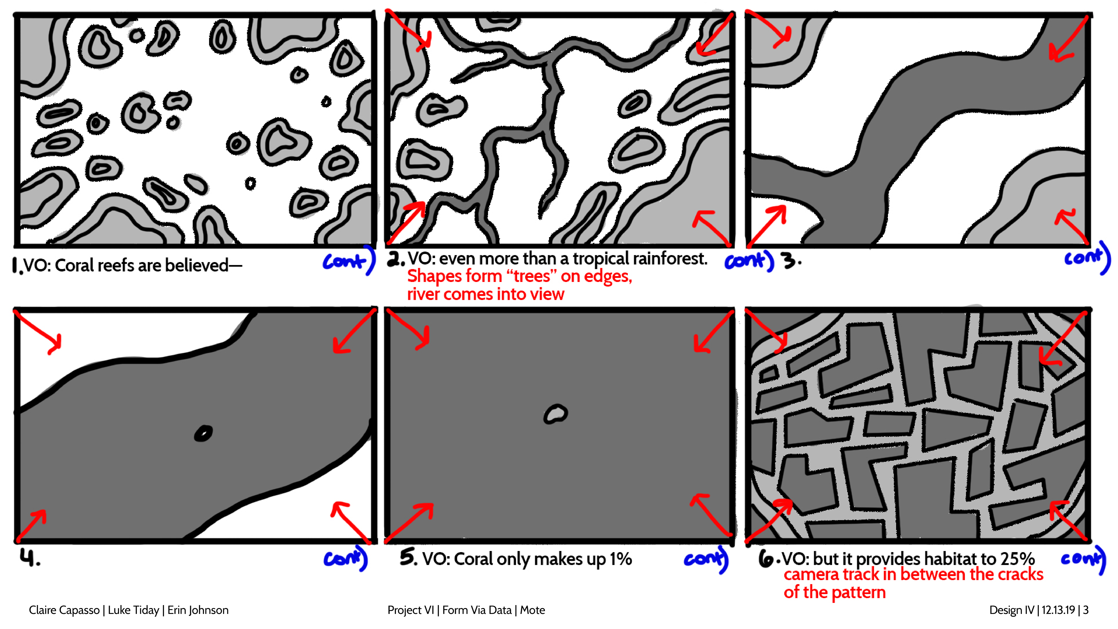 Design and story boards for a spot focusing on coral bleaching and the Mote Aquarium.